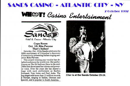 1992- 2 Ottobre - Sands Casino AD - Atlantic City ( N.Y ) USA