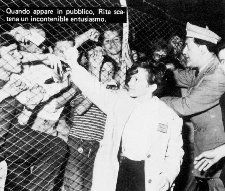 Teddy ,sua madre e quelli della polizia non riuscivano a proteggerla sufficientemente da noi che volevamo vederla, complimentarci con lei, abbracciarla. Io presi tanti di quegli spintoni che stavo quasi per desistere, ma poi pensai, “ Alzarmi all’alba senza vedere Rita ? Questo mai ! “ Allora mi feci coraggio e strattonando anch’io, riuscii finalmente a farmi strada e a trovarmi di fronte a lei