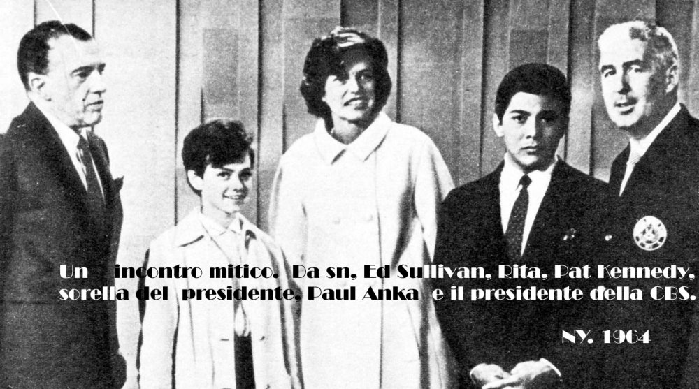 1964 - April -" Rita with Ed Sullivan, Pat Kennedy, Paul Anka and CBS's President-" N.Y. USA
