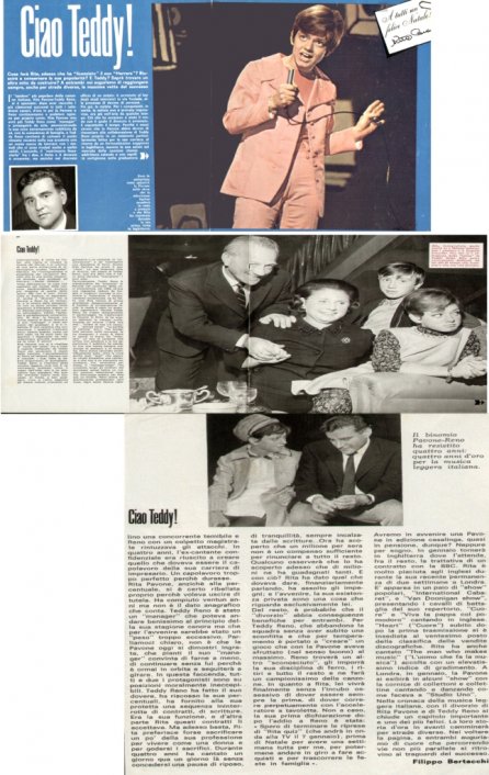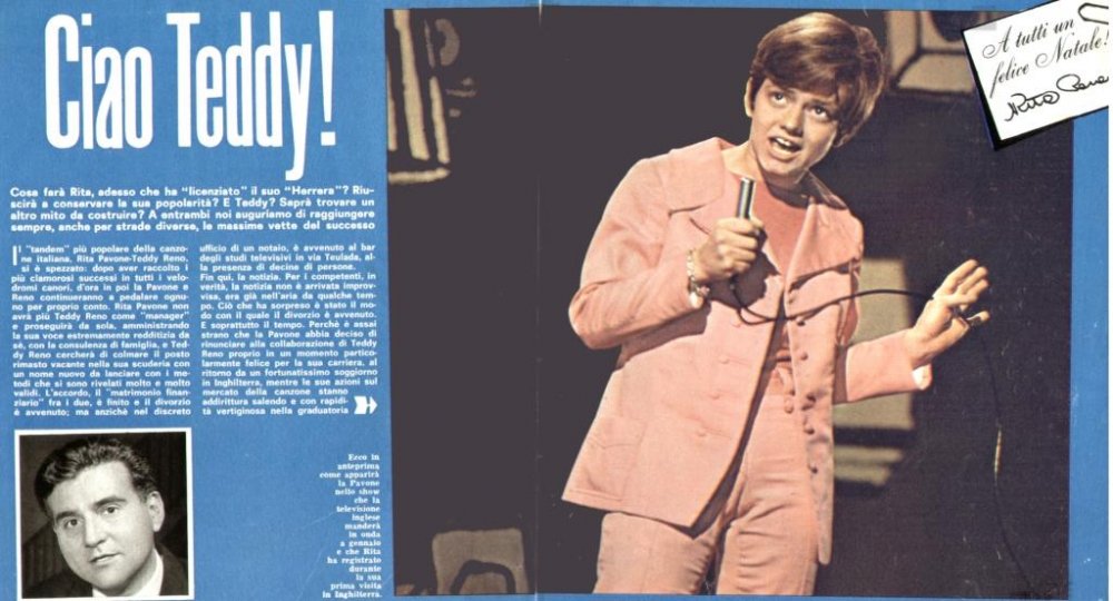 [..] Rita tornerà in gennaio a Londra. Ancora per la BBC. E' molto piaciuta agli inglesi durante la sua recente permanenza di due settimane a Londra. E' apparsa in un paio di show popolari, " International Cabaret " e al " Val Doonican Show " cantando " Heart "( Cuore ), e subito dopo la prima trasmissione, si è insidiata al ventesimo posto della classifica delle vendite discografiche.
