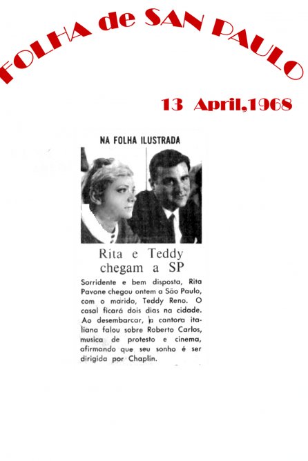 1968, 13 April - " Rita e Teddy chegam a SP " - FOLHA DA TARDE - Brazil