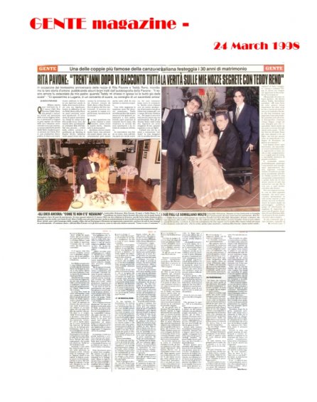 1998 - 24 March - " Rita Pavone: Trent'anni opo vi racconto..." ( Thirty years later, I'll tell you the whole truth about my secret wedding with Teddy Reno ) - GENTE Magazine - Italy
