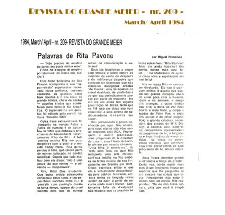 1984 - Marzo/ Aprile - " Palavras de Rita Pavone " ( Parole di Rita Pavone ) - REVISTA DO GRANDE MEIER - Brasile