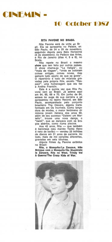 1987 - 10 Ottobre - " Rita Pavone in Brasile " - CINEMIN - Brasile
