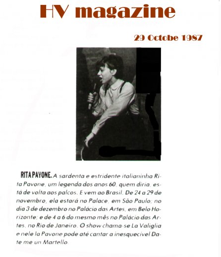 1987- 29 Ottobre - " Rita Pavone... " - HV MAGAZINE - Brasile