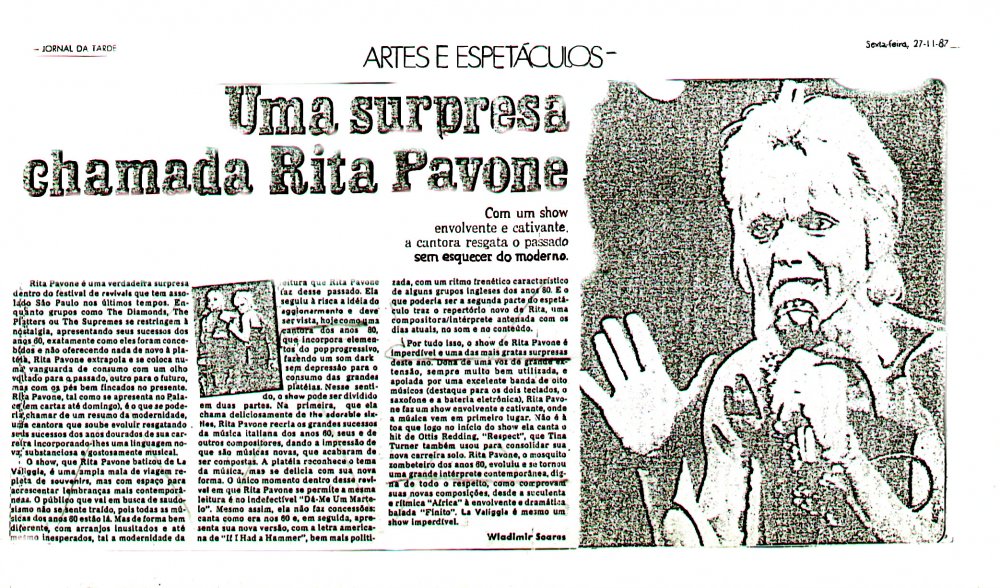 1987 - 27 Novembre - " Uma surpresa chamada Rita Pavone " ( Una sorpresa chiamata Rita Pavone ) - JORNAL da TARDE - SP- Brasile