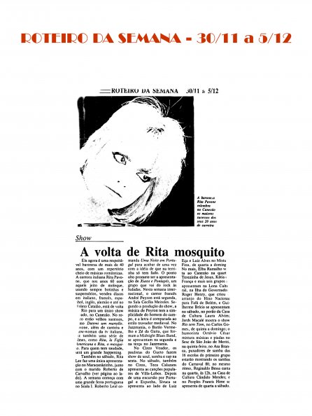1987- 30 Ottobre - " A volta de Rita mosquito " ( Il ritorno di Rita la zanzara ) ROTEIRO DA SEMANA- Brasile