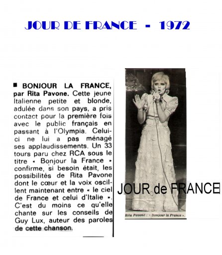 1972 - Gennaio - " Bonjour la France par Rita Pavone " ( Buongiorno Francia da Rita Pavone ) -JOUR DE FRANCE magazine - Francia