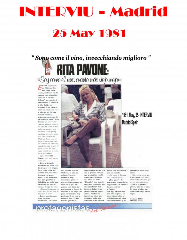 1981- 25 Maggio - " Rita Pavone : Soy como el vino . Cuanto más viejo, mejor ." ( R. Pavone : Sono come il vino. Invecchiando miglioro .) - INTERVIU Magazine - Spagna